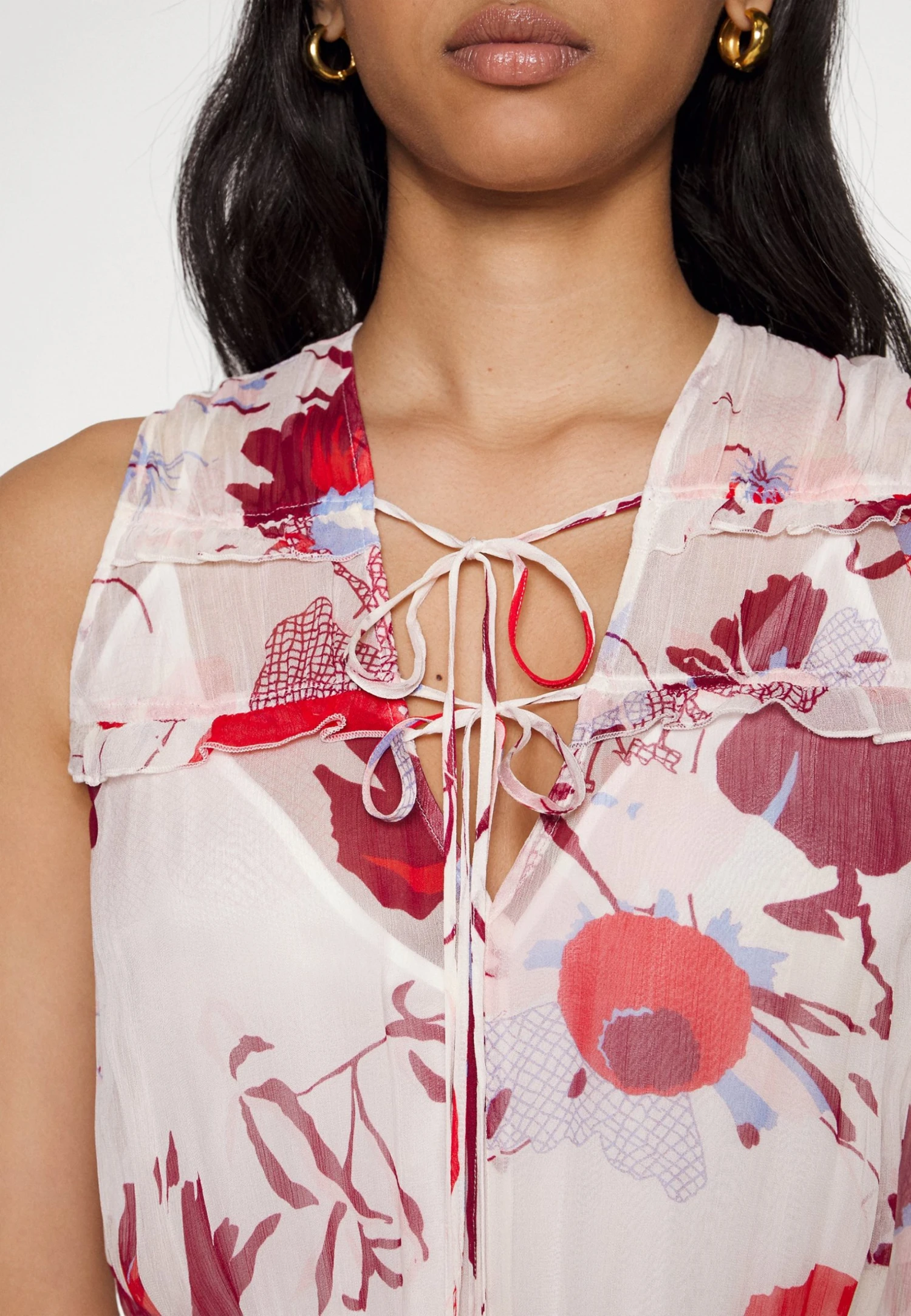 | Neckline | Low-cut v-neck |