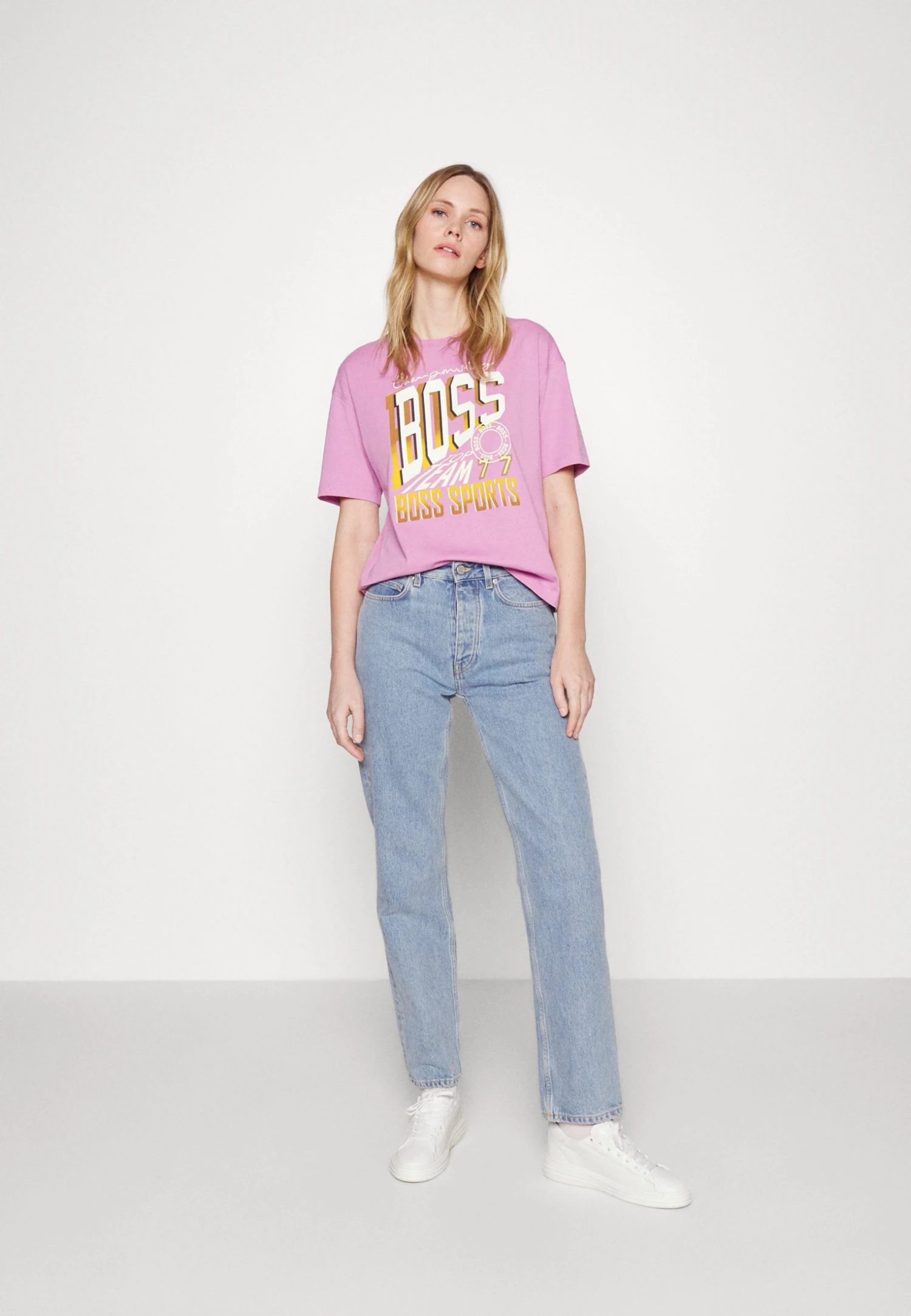 Boss Evarsy Sport – Print T-Shirt – Open Pink